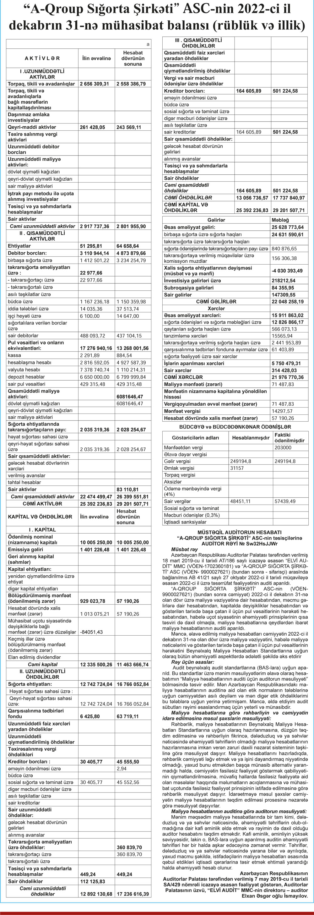 Ötən il "A-Qroup Sığorta Şirkəti" xalis sığorta ehtiyatının yaradılmasına 4 milyon 30 min manat ayırıb (2021-ci ildə ehtiyatdan 177 min manat azad olmuş və gəlirə əlavə edilmişdi).
