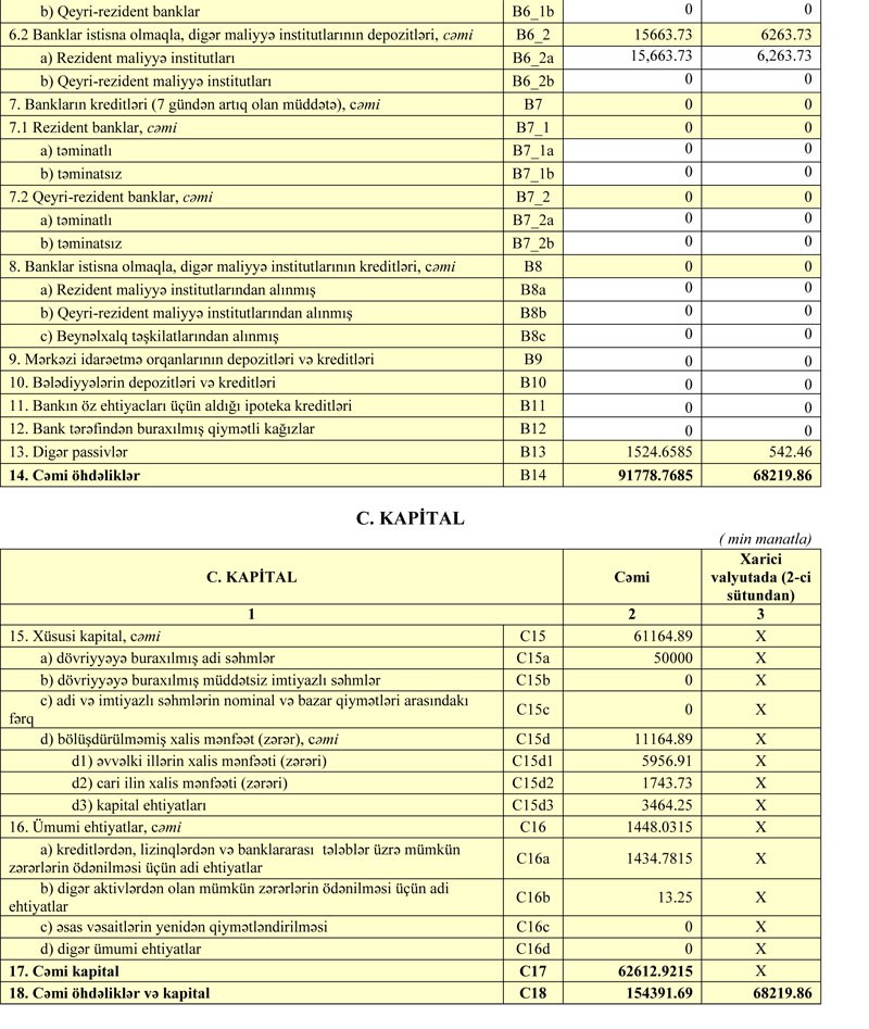 Ötən ilin sonu ilə müqayisədə Bankın kredit portfeli 54,7 milyon manatdan 65,8 milyon manata, depozit portfeli isə 37,9 milyon manatdan 47,3 milyon manata qalxıb.