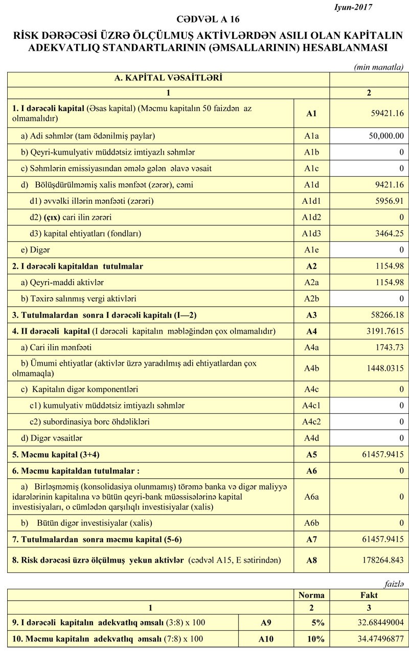 “Ziraat Bank Azərbaycan” ASC 2017-ci ilin 1-ci yarısını 1 milyon 744 min manat xalis mənfəət ilə başa vurub. Bank 2016-cı ilin birinci yarısında bu ildəkindən 2 dəfə çox - 3 milyon 495 min manat xalis mənfəət əldə etmişdi.