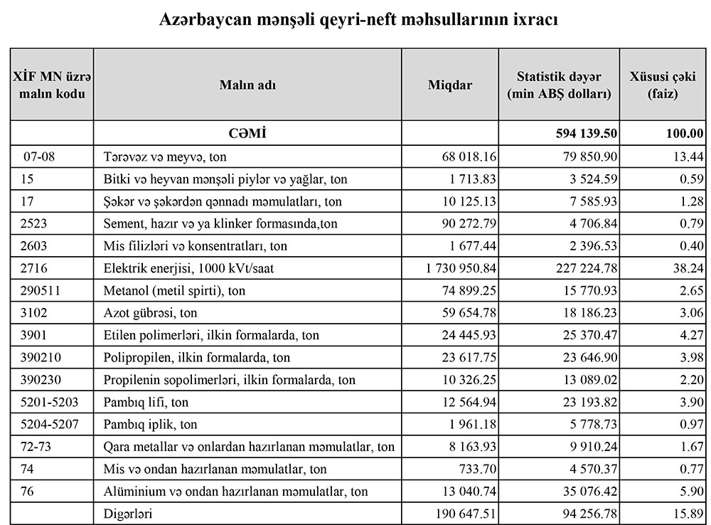 Azərbaycanın ən çox ixrac və idxal etdiyi mallar - YENİ SİYAHI