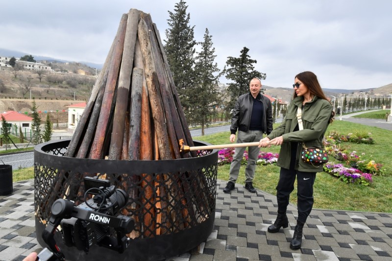 Sonra dövlətimizin başçısı Talış kəndində Novruz tonqalını alovlandırıb və Azərbaycan xalqını bayram münasibətilə təbrik edib.