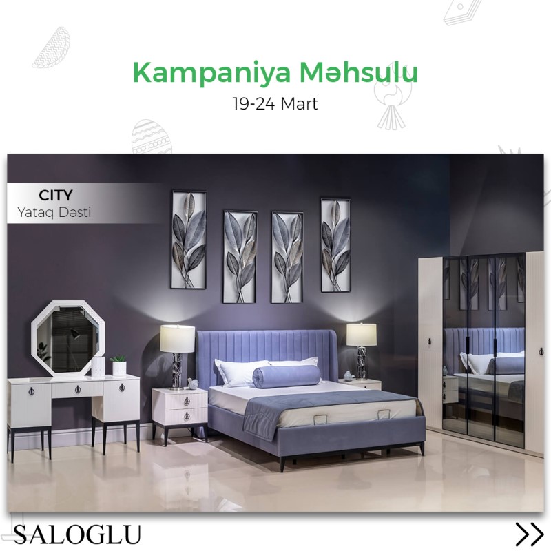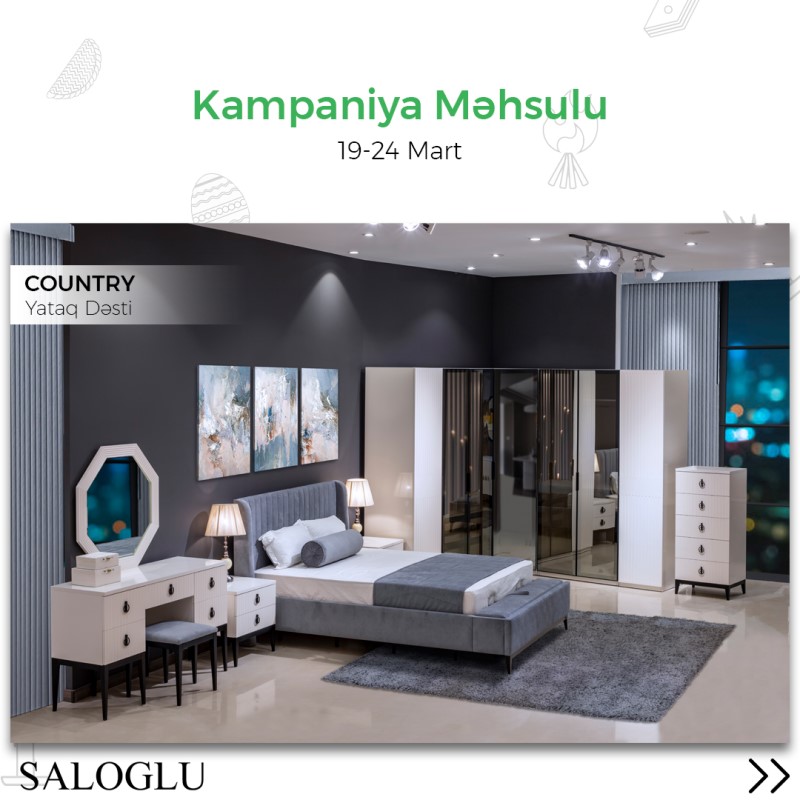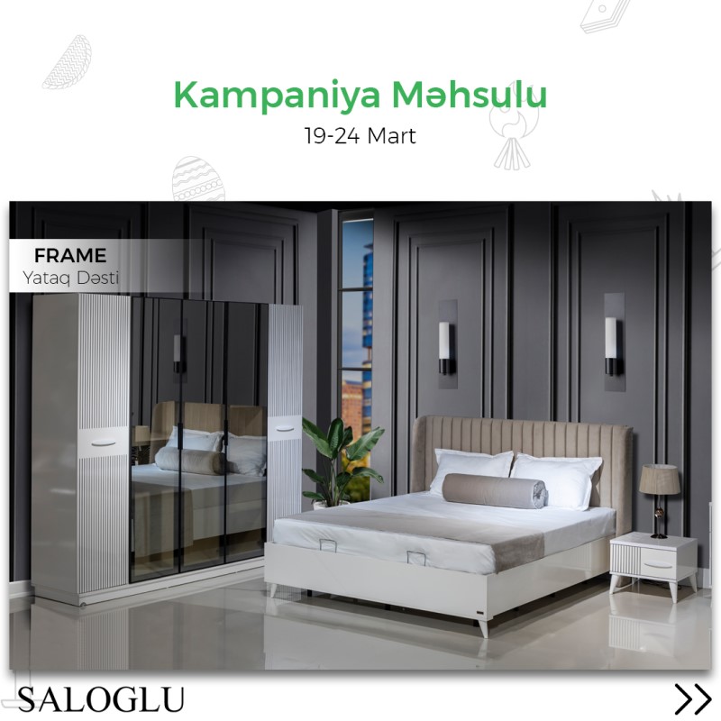 "Daim inkişafda olan xidmət şəbəkəmiz və son texnoloji avadanlıqlarla təchiz edilmiş fabriklərimizlə alıcılarımızın qəlbində xüsusi yer tutmuşuq. Bu Novruzda hər kəsi sevindirəcək bahar kampaniyamıza start verdik. Martın 19-undan 25-nə dək çox bəyənilən və satılan yataq qonaq mebellərimizə mövcud 30 % dən əlavə 15% də endirim etdik.