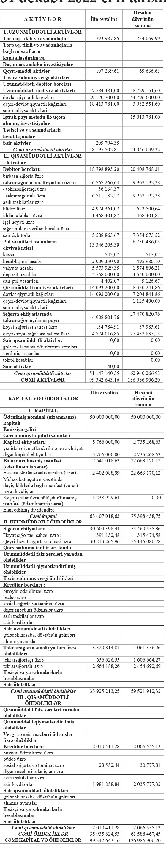 "AzRe Təkrarsığorta" topladığı təkrar sığorta haqları 2021-ci ildə 31 milyon 878 min manat ikən, 2022-ci ildə 34 milyon 901 min manat təşkil edib (9,5% artıb). Şirkətin investisiya gəlirləri 4 milyon 773 min manatdan 14 milyon 904 min manata yüksəlib (3,1 dəfə artıb).