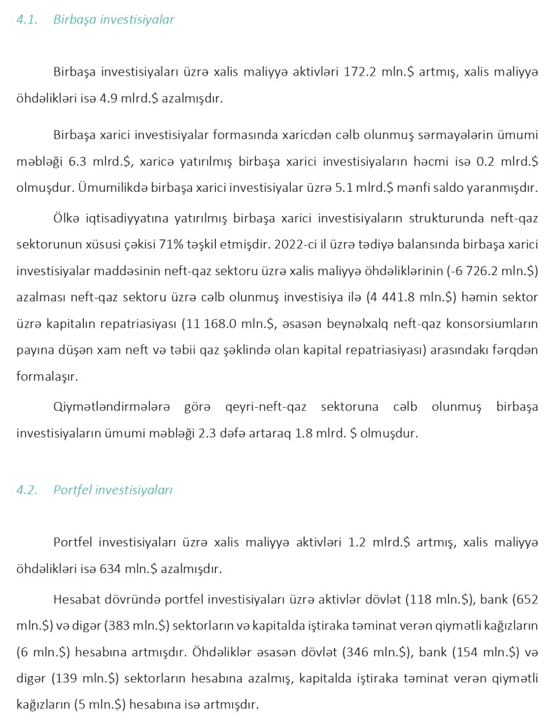 Marja.az xəbər verir ki, bu, Azərbaycan Mərkəzi Bankının 2022-ci il üzrə Tədiyyə Balansı hesabatında bildirilir.