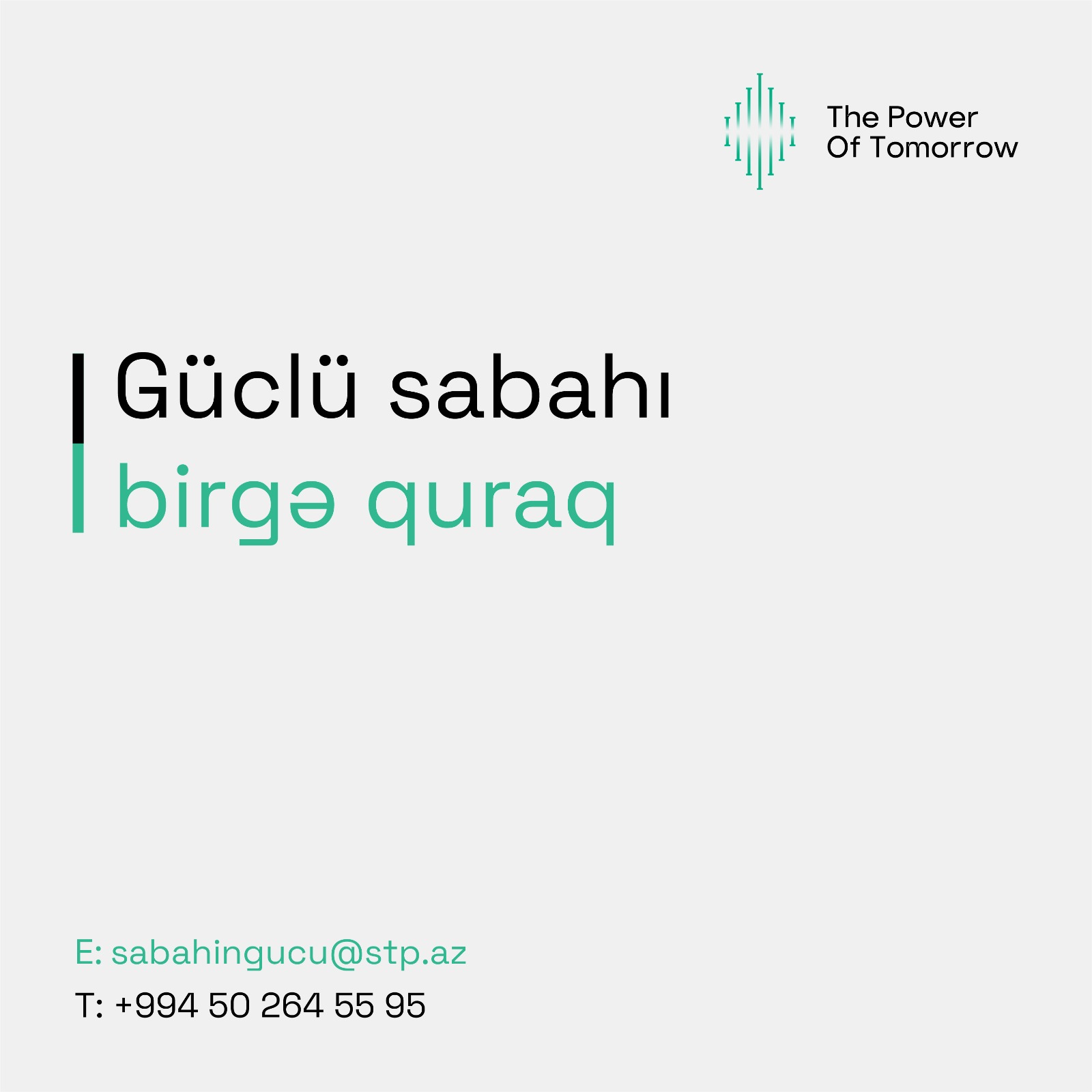 STP-nin “Sabahın Gücü” İnkişaf Proqramının təqdim etdiyi imkanlardan faydalanaraq gələcək karyerasında ilk addımı atmaq istəyən gənclər [email protected] ünvanına müraciət edib ətraflı məlumatları əldə edə bilərlər.