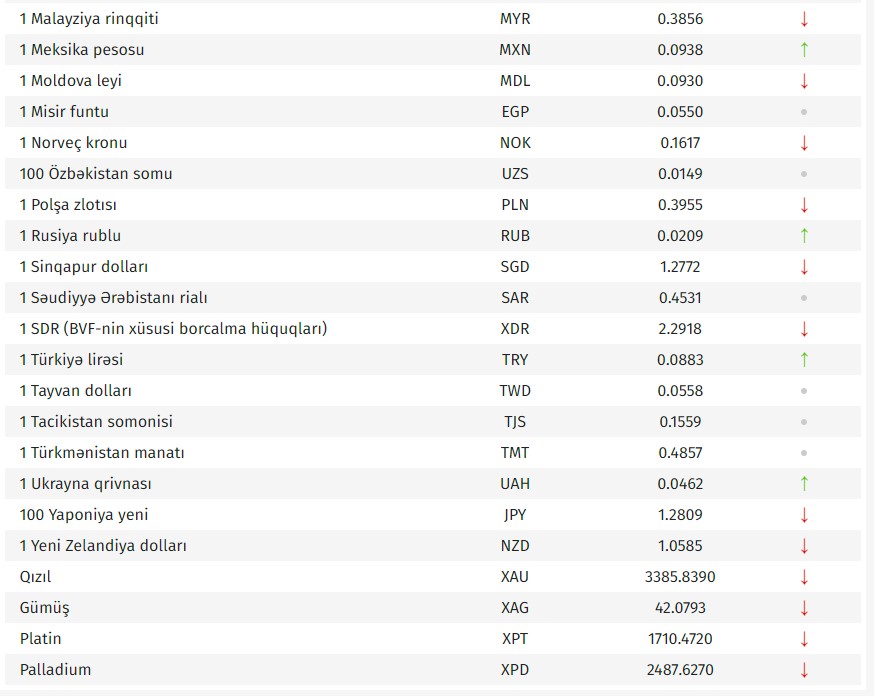 Dolların bazar ertəsi üçün rəsmi məzənnəsi müəyyən olunub