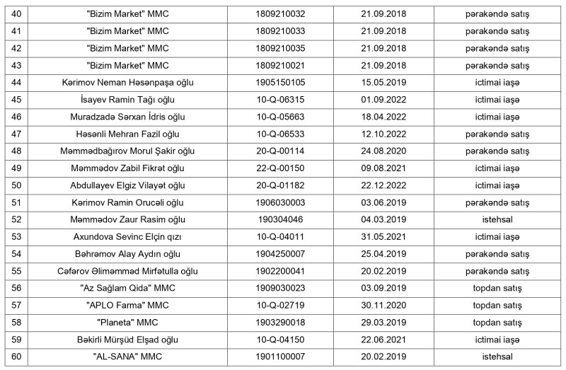 Həmçinin AQTA, "Dilim-Dilim", “Əsl dad” kolbasalarının istehsalçısı olan "Sevilən Ad" MMC-nin də istehsal fəaliyyəti üzrə qida təhlükəsizliyi qeydiyyatını ləğv edib.