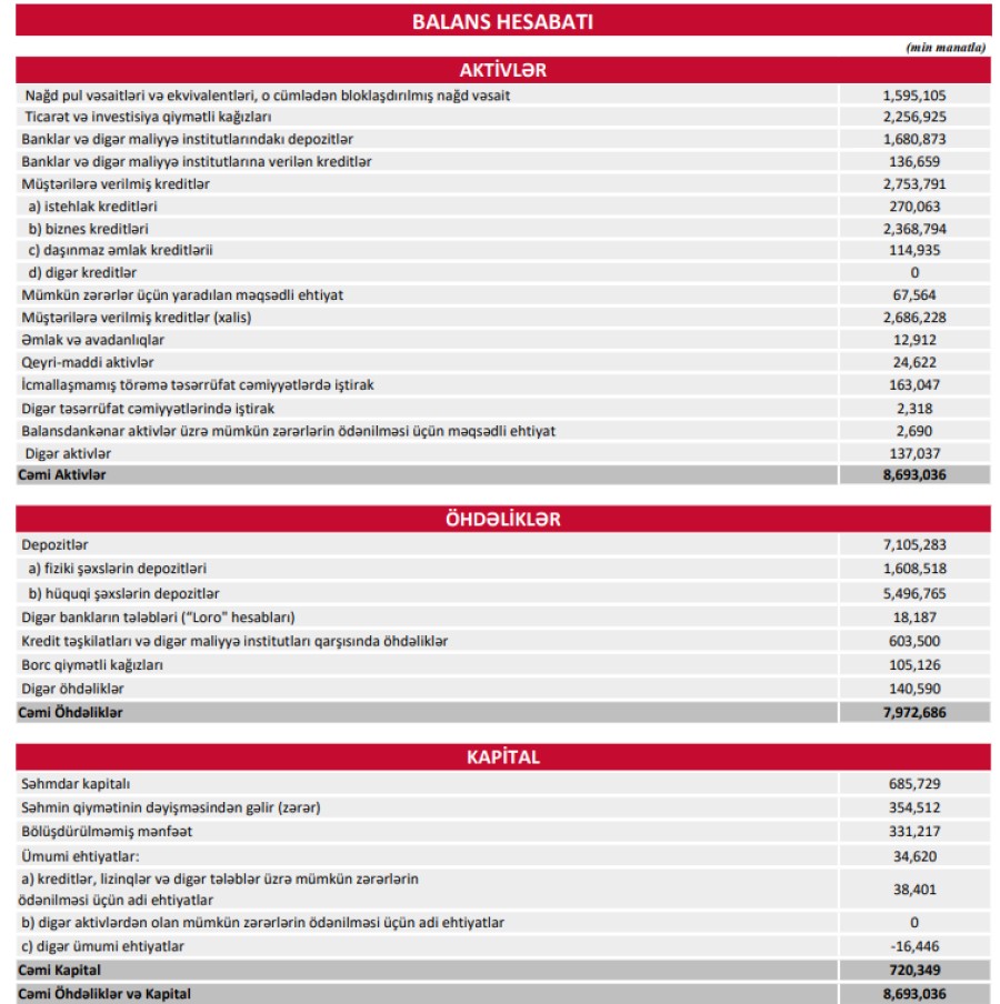 AKTİVLƏRİ 173 MİLYON MANATDAN ÇOX ARTIB