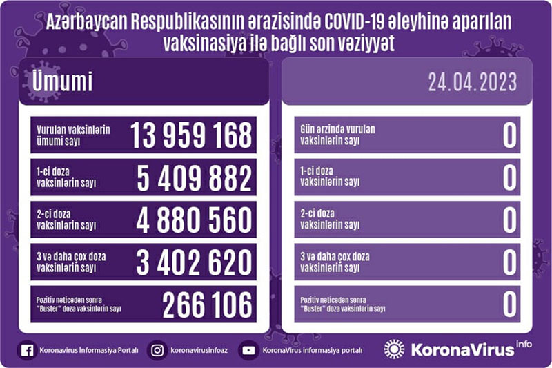 Azərbaycanda son sutkada koronavirus (COVID-19) əleyhinə peyvənd aparılmayıb.