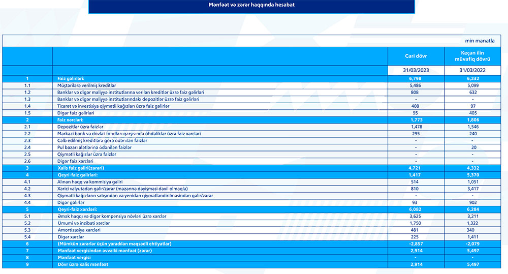 İlk rübdə Bankın depozit portfeli 10 milyon manatdan çox artaraq 104 milyon 910 min manata yüksəlib.