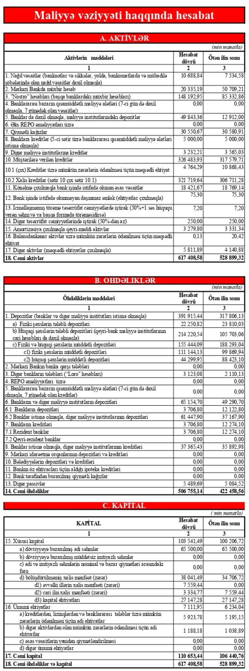 Həmçinin 2022-ci ilin I rübü ilə müqayisədə cəmi aktivlərdə də yüksək artım qeydə alınıb ki, bu da 37,4% təşkil edərək, göstəricinin 617 mln. 408 min manatı keçməsi ilə nəticələnib.
