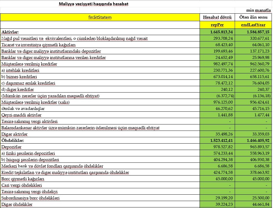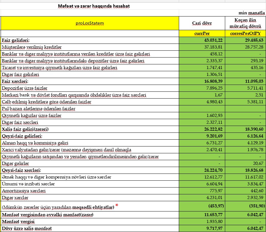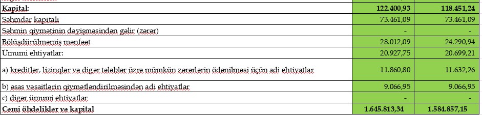 Müqayisə üçün qeyd edək ki, 2022-ci ilin 1-ci rübündə ehtiyatdan azad qayıdan 352 min manat mənfəətə əlavə edilmiş və Bankın mənfəəti 6 milyon 42 min manata yüksəlmişdi.