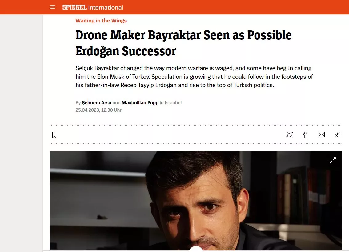 Almaniyanın nüfuzlu “Speigel” jurnalında Türkiyənin “Baykar Technology” şirkətinin lideri Selçuk Bayraktarın (Səlcuq Bayraqdar) nailiyyətlərinin təhlil edildiyi məqalə dərc olunub. Marja xəbər verir ki, təhlildə Bayraktarın “Ərdoğanın mümkün varisi” kimi göründüyü bildirilib.