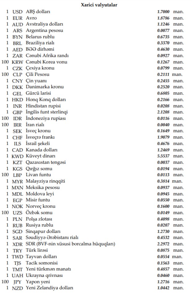 Dolların bazar ertəsi üçün rəsmi məzənnəsi müəyyən olunub