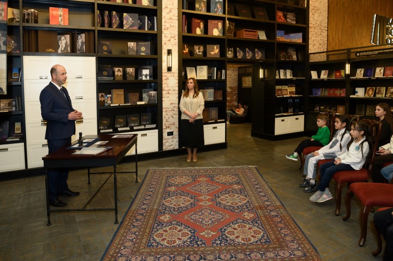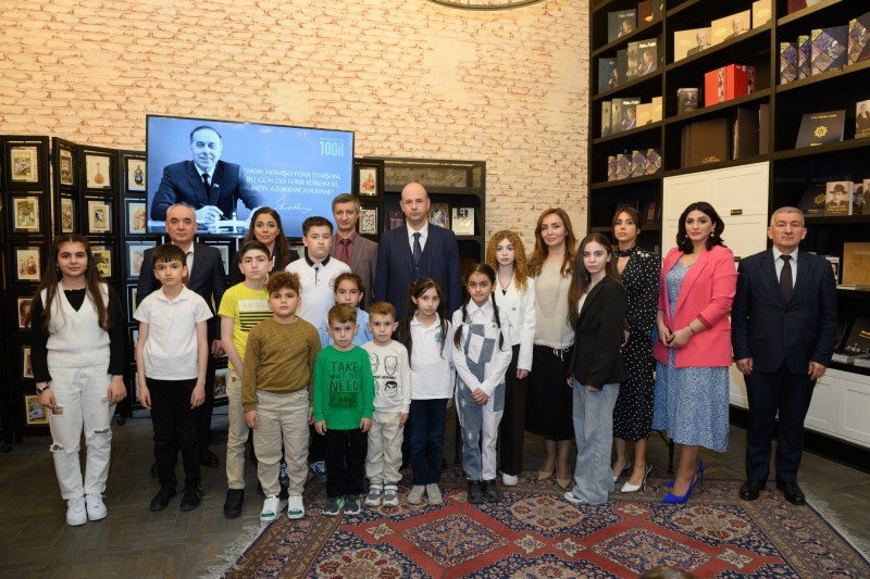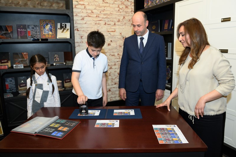 Sonra şəhid övladlarına 1993-cü ildən etibarən Ulu Öndərə həsr edilməklə nəşr olunmuş poçt markaları haqqında qısa film nümayiş etdirilib.