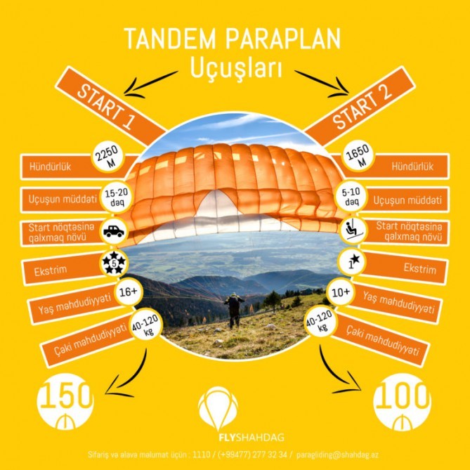 Yenilik: Azərbaycanda ilk tandem paraplan uçuşları - QİYMƏTLƏR