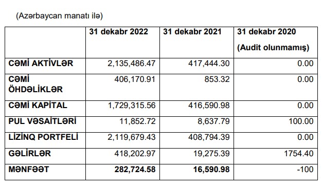 "Legion Financial" lizinq şirkətinin portfeli 5 dəfədən çox, xalis mənfəəti 22 dəfəyə yaxın artıb