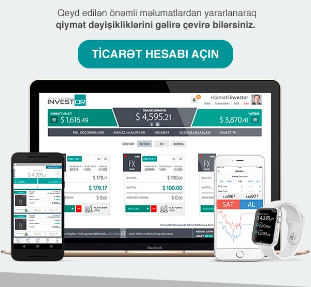 Risk bildirişi:Yuxarıda göstərilən məlumatlar tamamilə tövsiyə xarakterlidir. Bu fəaliyyət üzrə həyata keçirilən əməliyyatlar yüksək risk qrupuna daxildir və “InvestAZ İnvestisiya Şirkəti” QSC yuxarıda göstərilən məlumatlar əsas götürülməklə, həyata keçirilən investisiya əməliyyatları üzrə heç bir öhdəlik daşımır.