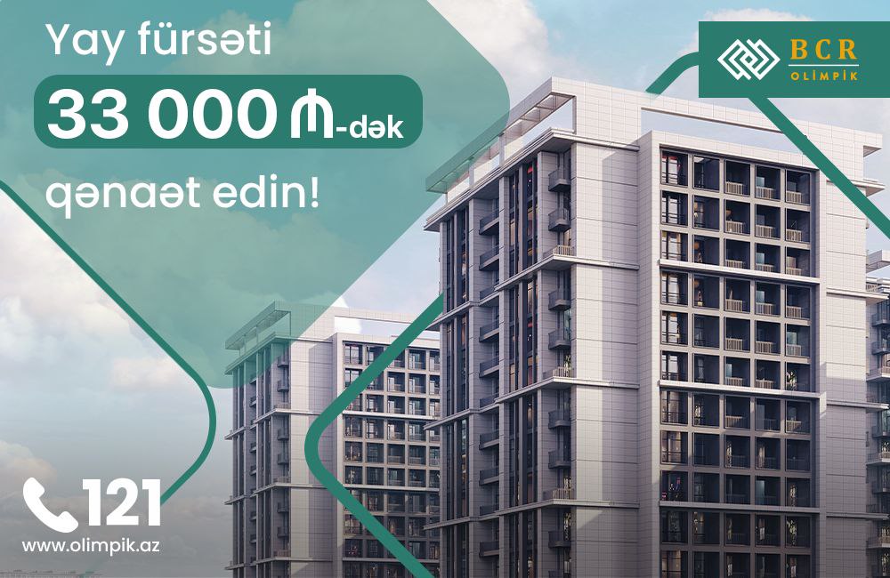 (®) “BCR Olimpik” layihəsi bu yay sizə mənzil alarkən 33 000 manata qədər qənaət etmək fürsəti təqdim edir. 31 avqusta qədər keçirilən yay kampaniyamız həm nağd, həm də daxili hissəli ödəniş ilə satılan mənzillərə şamil olunur.