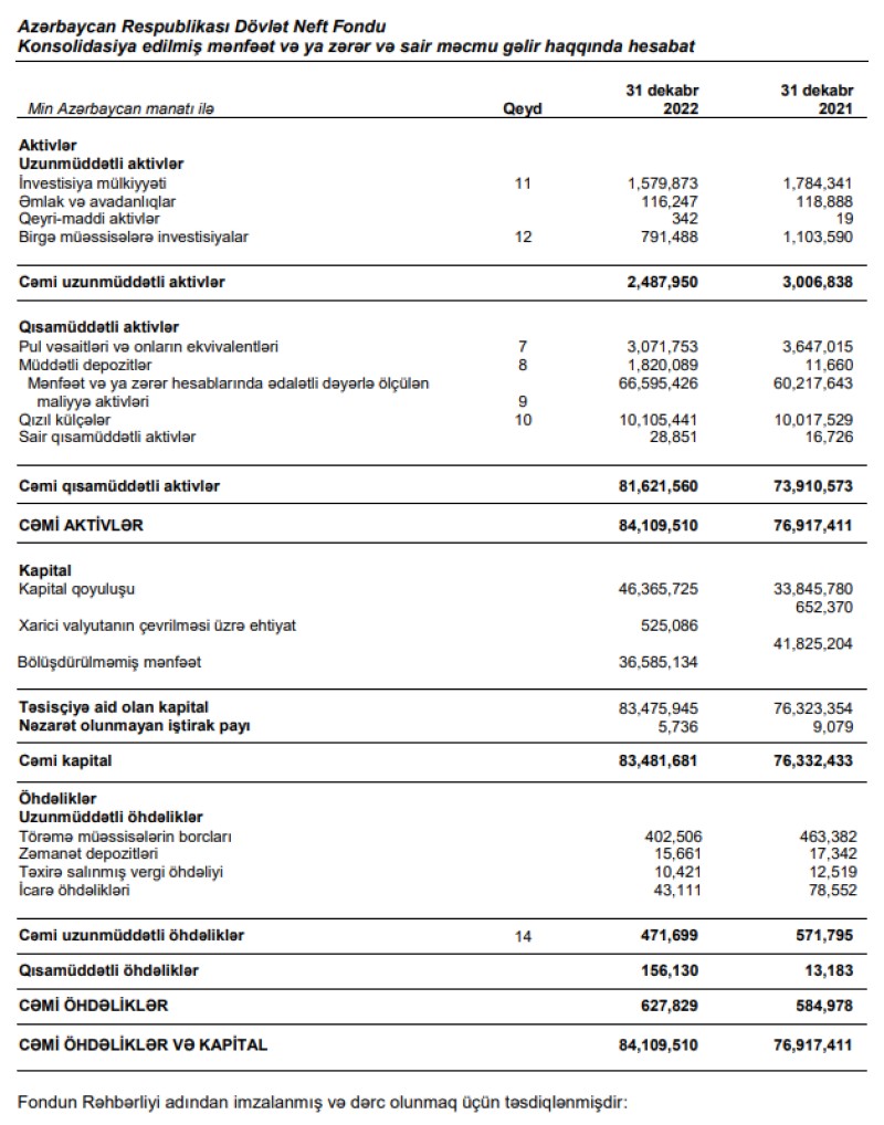 Marja xəbər verir ki, bu, Azərbaycan Respublikası Dövlət Neft Fondunun (ARDNF) 2022-ci il üzrə maliyyə hesabatlarında bildirilir.