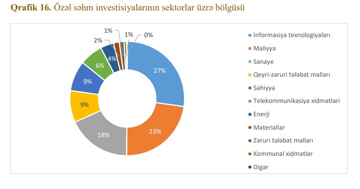 İnformasiya texnologiyası və maliyyə sektorları digər sektorlara nisbətən daha böyük paya sahibdirlər.