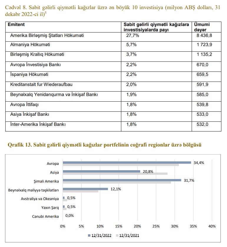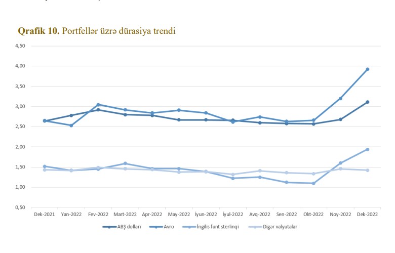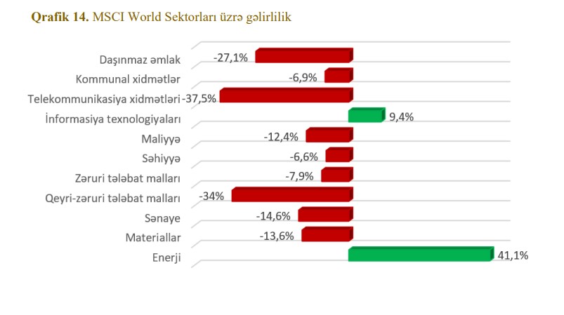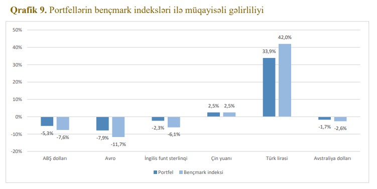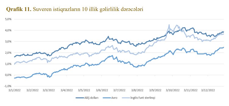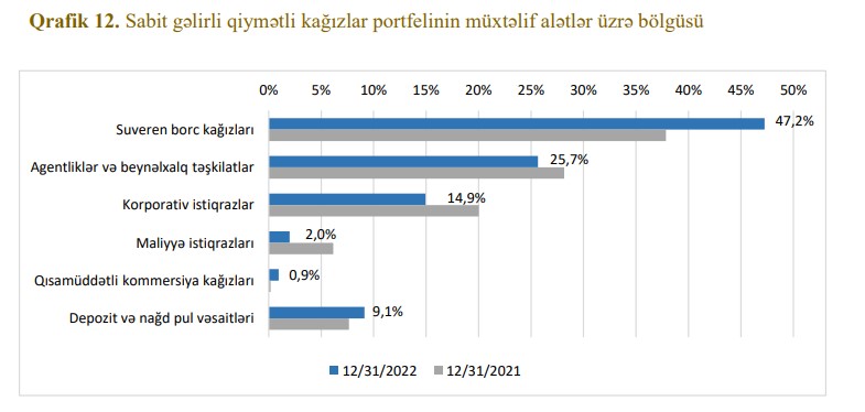 "Uzun müddət tətbiq olunmuş kəmiyyət yumşaldılması siyasətinin dəstəyi ilə mövcud olmuş əlverişli iqtisadi şərait dövründən yüksək inflyasiya, iqtisadi artımın zəifləməsi və böyük volatilliklə xarakterizə olunan yeni mühitə keçid 2022-ci ildə maliyyə aktivlərinə mənfi təsir göstərmişdir. Yüksək inflyasiya səbəbindən il ərzində həm istiqraz, həm də səhm portfellərinin kəskin dəyər itirməsi müşahidə olunmuşdur",- Hesabatda bildirilir.