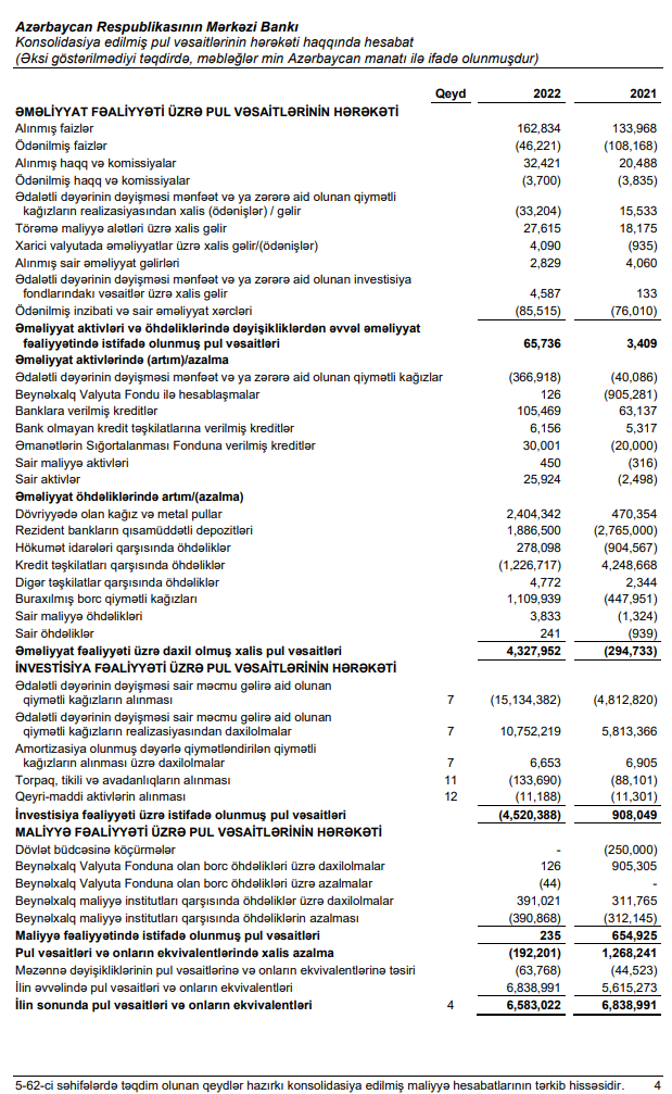 Marja.az bu barədə 31 dekabr 2022-ci il tarixinə Azərbaycan Respublikasının Mərkəzi Bankının Konsolidasiya Edilmiş Maliyyə Hesabatlarına istinadən xəbər verir.