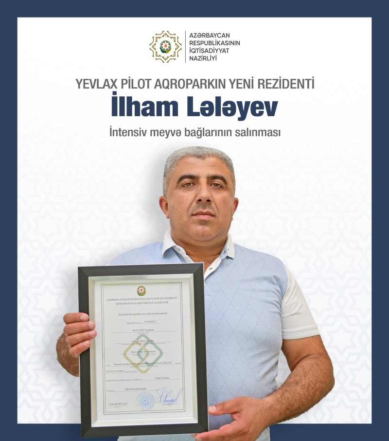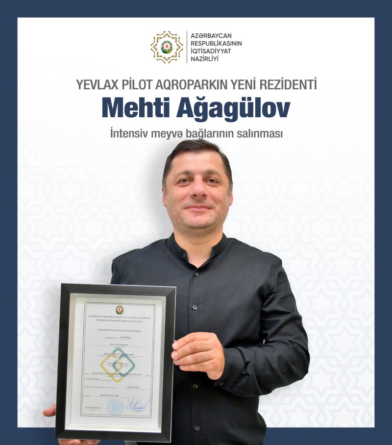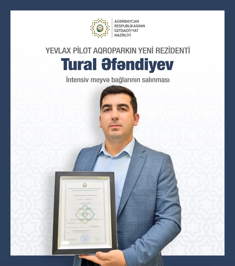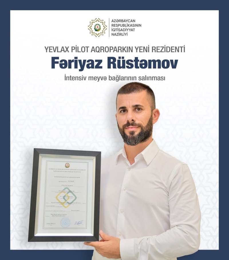 Yevlax Pilot Aqropark-da fərdi sahibkarlar Tural Əfəndiyev, Fəriyaz Rüstəmov, Mehti Ağagülov və İlham Lələyevə rezident statusu verilib.