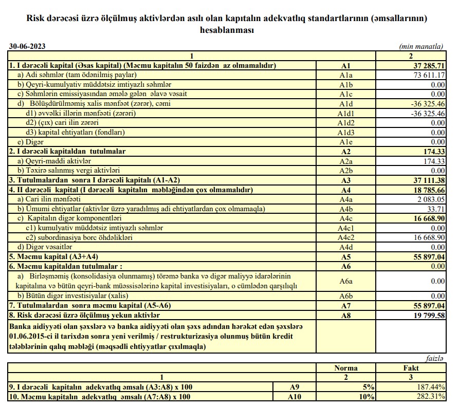 Gəlirlərinin azalmasına qarşı xalis mənfəətin artması aktivlər üzrə ehtiyatların yaradılmasına ayırmalardan qayıdan (azad olan) vəsaitin artması ilə əlaqədardır. Əgər 2022-ci ilin ilk 6 ayında ehtiyatdan 99 min manat qayırmışdısa, 2023-cü ilin eyni dövründə 1 milyon 348 min manat azad olub və gəlirə əlavə edilib.