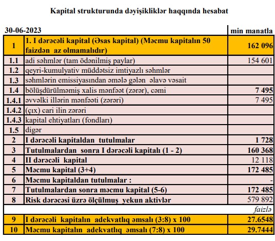 30 İyun 2023-cü il tarixində "Premium Bank" 172 miylon 485 min manat məcmu kapitala malik olub.