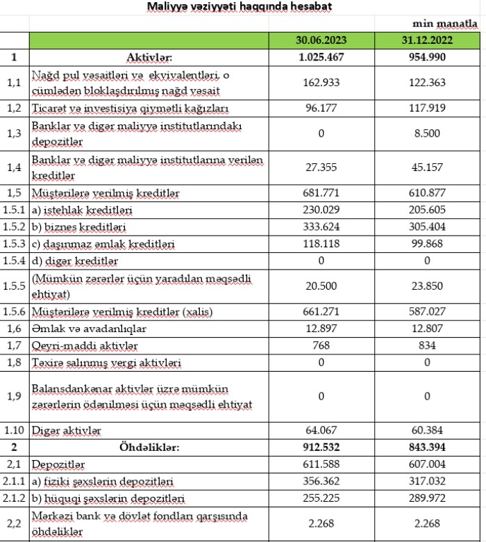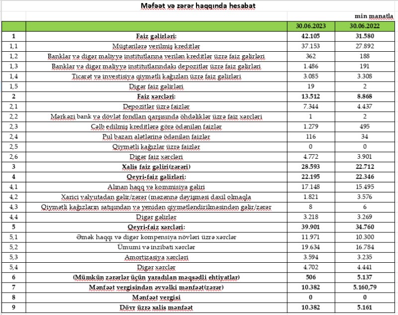 Bank 6 ayda 10 milyon manatdan çox xalis mənfəət əldə edib - İKİQAT ARTIMA NAİL OLUB