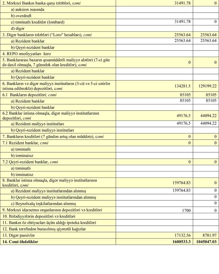 Müqayisə olunan dövrdə Bankın müştərilərə verdiyi kreditlər 1 milyard 274 milyon 525 min manatdan 1 milyard 338 milyon 869 min manata, depozitlər isə 1 milyard 98 milyon 899 min manatdan 1 milyard 230 milyon 598 min manata qalxıb.