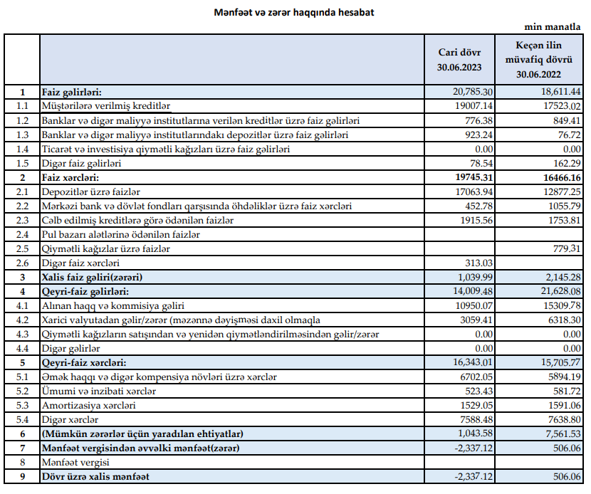 "Muğanbank" ASC 2023-cü ilin birinci yarısı (yanvar-iyun) üzrə maliyyə göstəricilərini açıqlayıb.