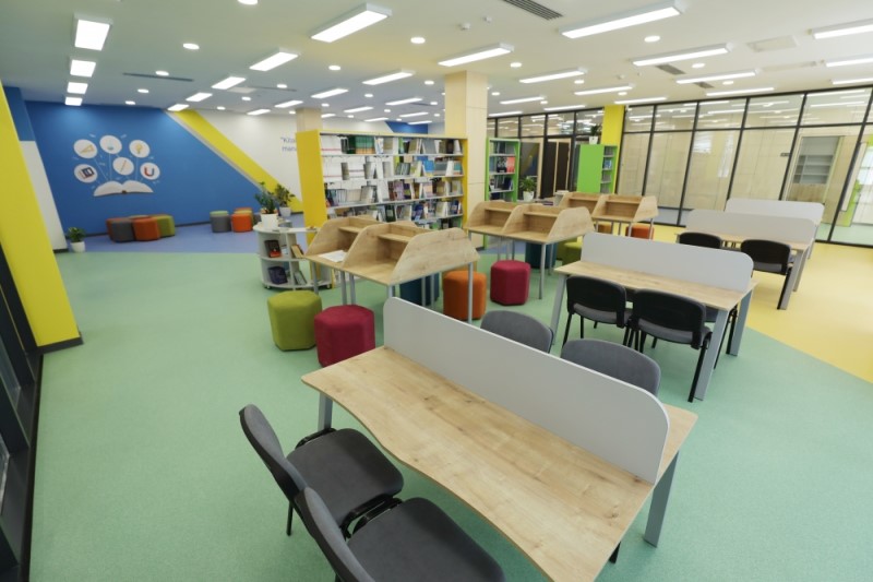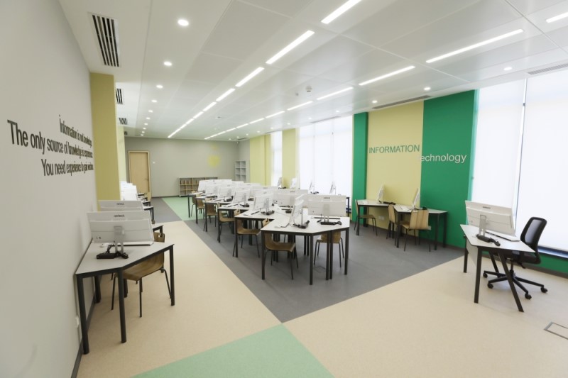 Daha sonra dövlət başçılarına və xanımlarına məktəbdə yaradılan şərait barədə məlumat verilib.