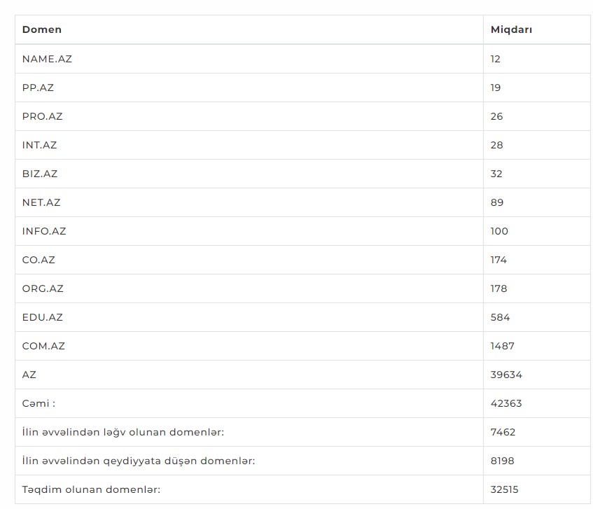 Məlumata görə, hazırda ".az" domeni ilə həm birbaşa, həm də 11 subdomen üzrə qeydiyyat mümkündür.