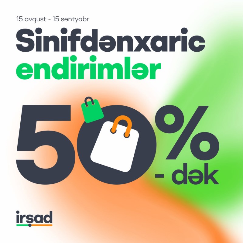İrşad uşaqlarla yanaşı böyükləri də düşünüb. “Sinifdənxaric” kampaniyası ilə də bir çox məhsullara 50%-dək endirim təklif edib.