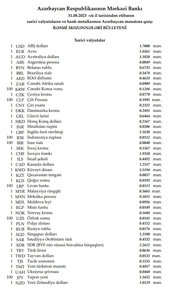 Dolların bazar ertəsi üçün rəsmi məzənnəsi müəyyən olunub