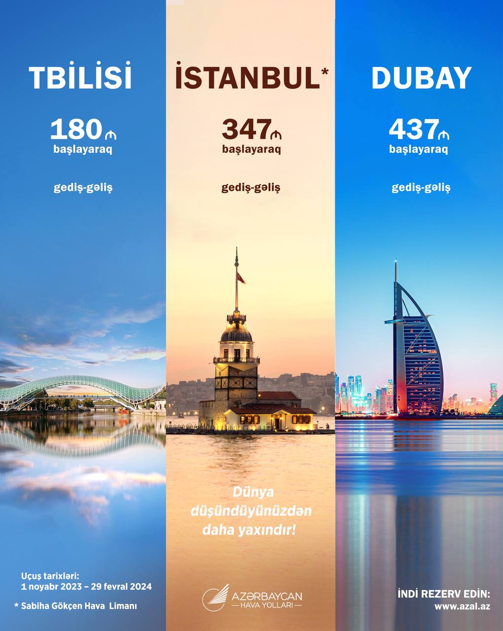 Azərbaycan Hava Yolları (AZAL) Tbilisi, İstanbul və Dubay uçuşlarına xüsusi təklif ilə çıxış edib.
