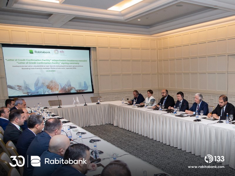 Rabitəbank və İTFC arasında 10 milyon dollar məbləğində “Letter of Credit Confirmation Facility” müqaviləsi imzalanıbRabitəbank ilə İslam İnkişaf Bankı (İİB) Qrupu üzvü Ticarətin Maliyyələşdirilməsi üzrə Beynəlxalq İslam Korporasiyası (İTFC) arasında özəl sektorun, xüsusən də KOB müştərilərinin ticarət maliyyələşdirmə ehtiyaclarını ödəmək və Azərbaycanda şəriətə uyğun ticarətin maliyyələşdirilməsi həllərinin təşviqinə töhfə vermək üçün 10 milyon ABŞ dolları məbləğində “Letter of Credit Confirmation Facility” (Akkreditiv) müqaviləsi imzalanıb.
