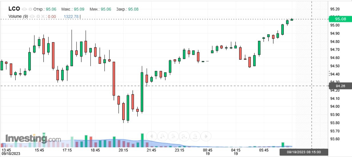Brent markalı neftin qiyməti 0,54% artaraq 95,08 dollar/barel təşkil edib. Eyni zamanda, WTI markalı xam neftin noyabr fyuçersləri 0,25% bahalaşaraq bir barel üçün 91,34 dollar olub.