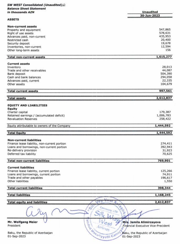 "Silk Vey Vest Aviaşirkəti" MMC 2023-cü ilin birinci yarısnı (yanvar-iyun) 10 milyon 85 min manat xalis mənfəət ilə başa vurub. Şirkət 2022-ci ilin birinci yarısını 602 milyon 314 manat xalis mənfəət ilə bağlamışdı. Beləliklə, "Silk Vey Vest Aviaşirkəti"nin xalis mənfəəti 59,7 dəfə azalıb. Xalis mənfəətin azalması gəlirlərin kəskin azalmasından qaynaqlanır.