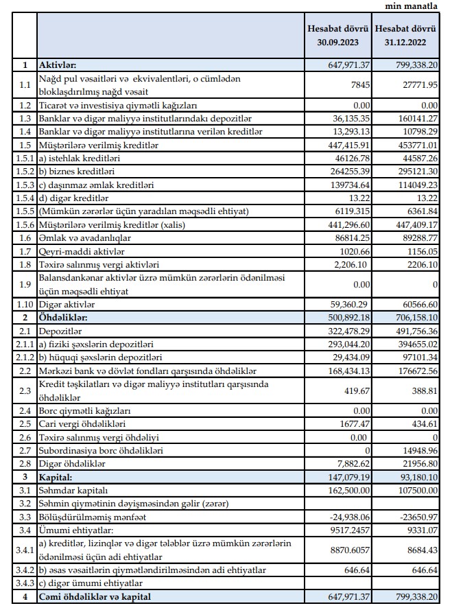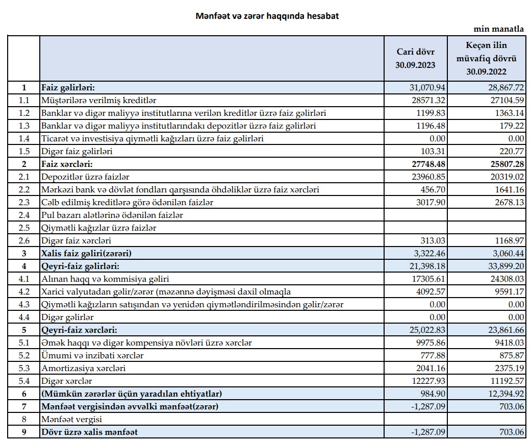 "Muğanbank" ASC 2023-cü ilin 9 ayı üzrə maliyyə göstəricilərini açıqlayıb.