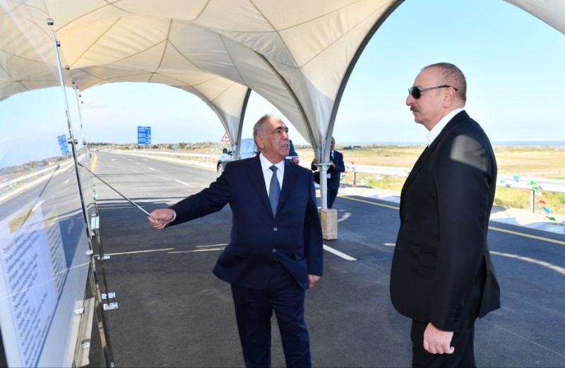Bildirilib ki, “Azərbaycan Respublikası regionlarının sosial-iqtisadi inkişafı Dövlət Proqramı”na uyğun olaraq yeni avtomobil yolunun Hacı Zeynalabdin Tağıyev qəsəbəsindən başlayaraq Rusiya sərhədinədək olan 150 kilometrlik hissəsi birinci texniki dərəcəyə uyğun inşa edilib.