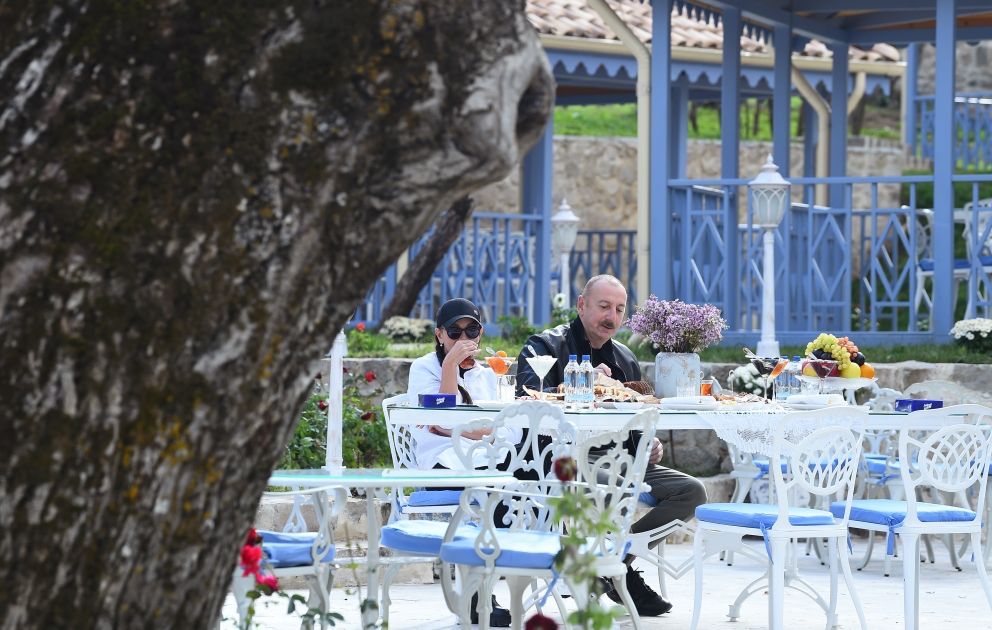 Dövlətimizin başçısı və birinci xanım otelin həyətində yasəmən ağacı əkiblər.