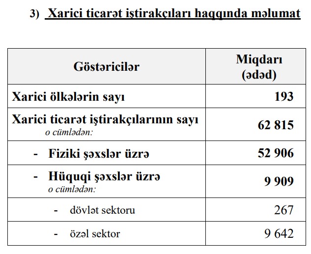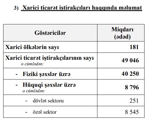 Azərbaycanda xarici ticarət iştirakçısı olan hüquqi şəxslərin sayı artıb.