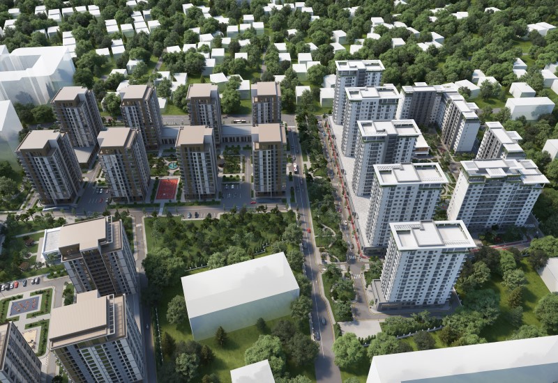 İki kompleksin ümilikdə əhatə etdiyi 7,5 hektara yaxın ərazidə sakinlərin sağlam və rahat həyat tərzinini təmin etmək üçün geniş infrastrukturun yaradılması nəzərdə tutulub. Yaşıllıqlarla əhatə olunmuş geniş həyət və içtimai iaşə obyektləri üçün böyük sərbəst bir sahə qalır.