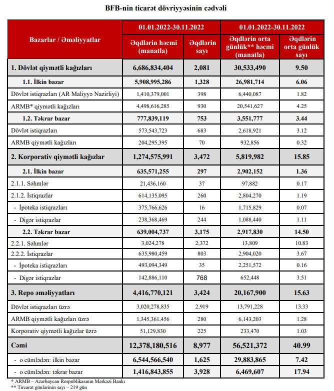 Maliyyə Nazirliyi 2022-ci ilin 11 ayında dövlət istiqrazlarının yerləşdirilməsi yolu ilə 1 milyard 410 milyon 379 min manat cəlb etmişdi. Beləliklə, bu il Xəzinənin istiqraz buraxılışı yolu ilə cəlb etdiyi vəsait 1 milyard 587 milyon 13 min manat və ya 2 dəfədən çox artıb.