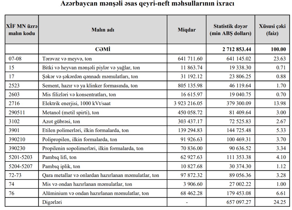 Azərbaycanın ən çox ixrac və idxal etdiyi mallar - YENİ SİYAHI