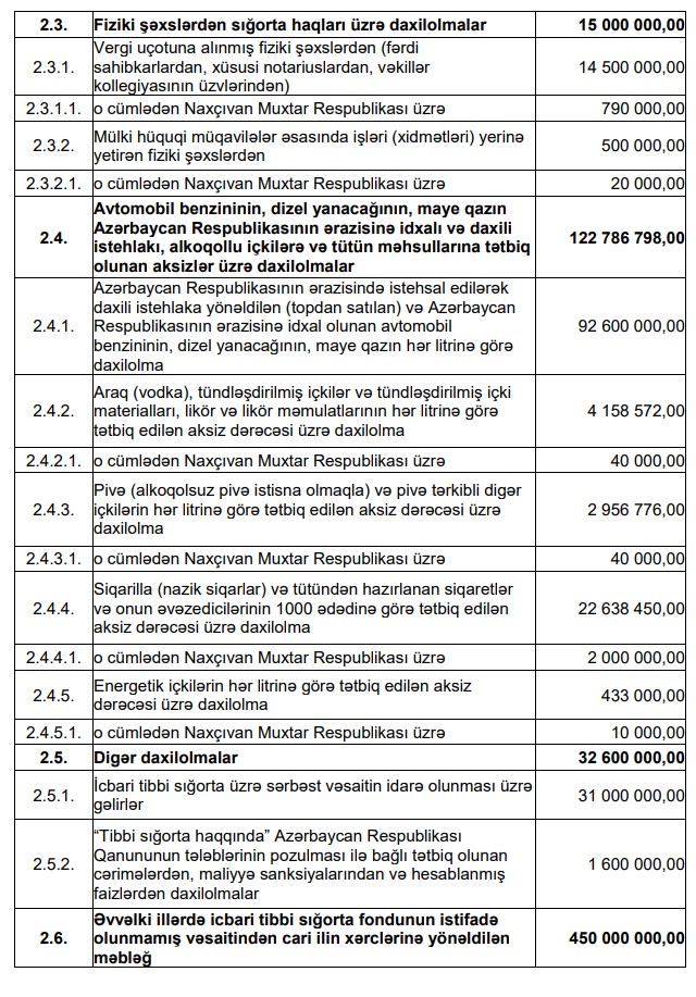 2024-cü ildə Fondun gəlirlərinin 1 375 987 690 manatı dövlət büdcəsindən ayırmalar, 815 053 804 manatı İşəgötürən və işçi tərəfindən icbari tibbi sığorta üzrə ödənilən sığorta haqları hesabına formalaşacaq.