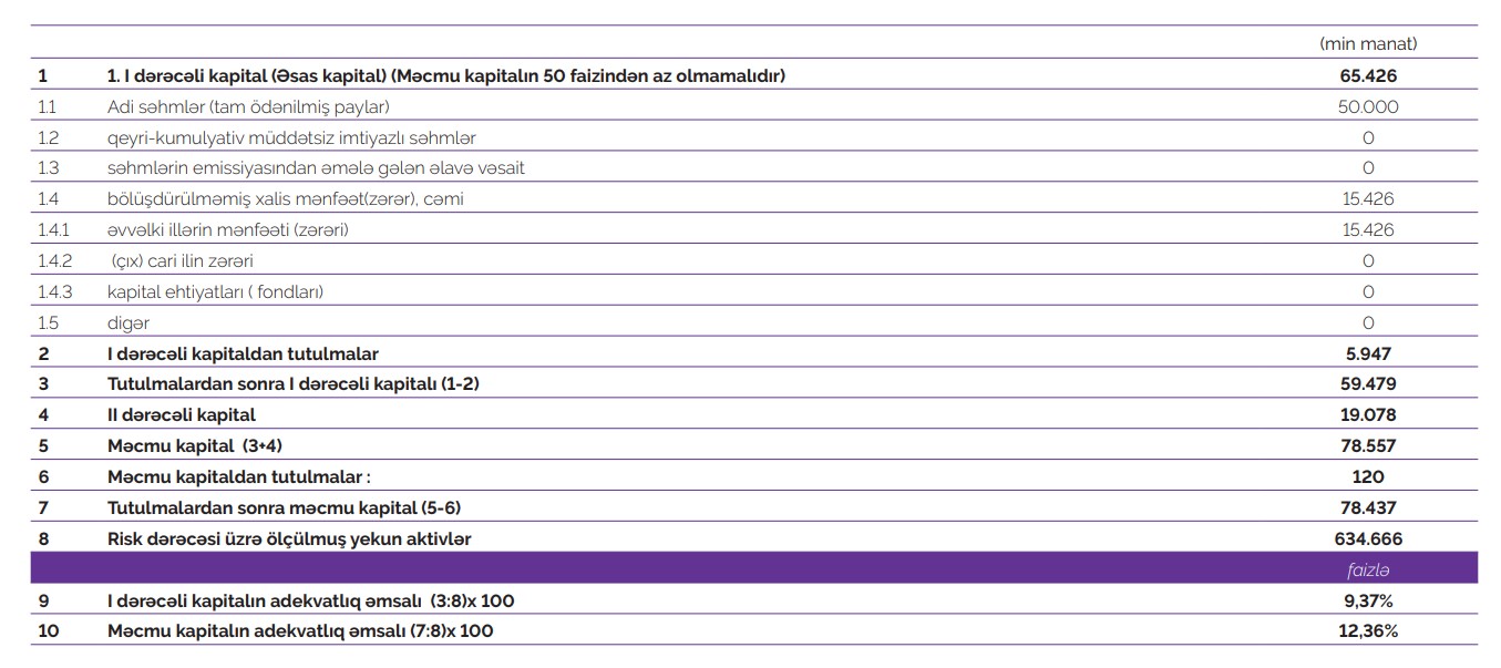 31 dekabr 2023-cü il tarixində "Azər-Türk Bank" 78 milyon 437 min manat məcmu kapitala malik olub.